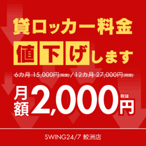 お知らせ 2025.9.17 ロッカー料金値下げのお知らせ! いつも当店をご利用いただきありがとうございます。この度、ロッカー料金を値下げいたしました!!これまで、6ヶ月 15,000円(税抜)12ヶ月 27,000円(税抜)でしたが…月額 2,000円(税抜)でご利用いただけるようになりました!長期契約よりも、ずっと気軽にご利用いただけます!ぜひこの機会にご活用ください♪